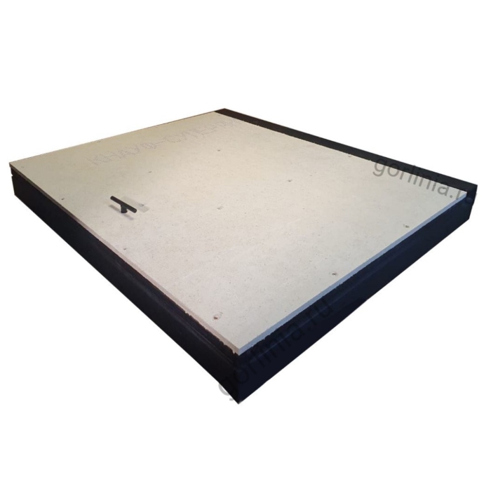 Эту модель можно монтировать даже после ремонта, когда пол вокруг напольного отверстия уже облицован плиткой, потому что крышка по трем сторонам опирается на раму из профиля, совпадающую с периметром отверстия в полу.