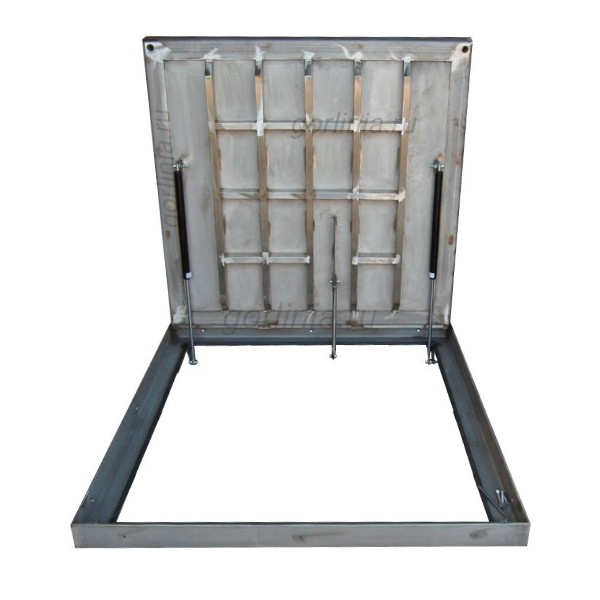 Коробка сварена из стали AISI 304 с толщиной стенки 5/6 мм; в дне корыта лист 5/8 мм (параметр зависит от грузоподъемности), снизу армирован профильной трубой 50х25. Тип сварки: аргонно-дуговая сплошным швом с присадками для нержавейки. Дополнительная комплектация: газлифт 2000N.