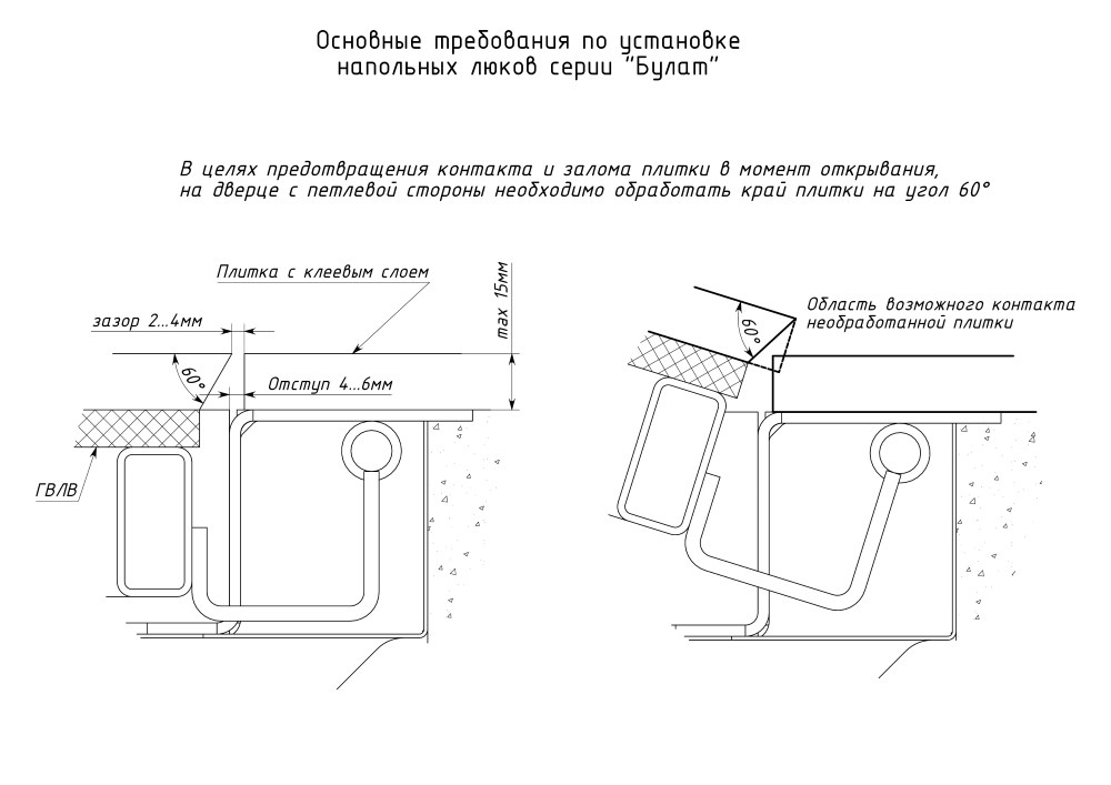 Облегченная рама из листового проката 3 мм с наличником для установки в поверх черновой стяжки в нулевую отметку полов. Каркас с обвязкой сварен из трубы 30х20, обшит ГВЛ над утеплителем под финишную отделку плиткой.