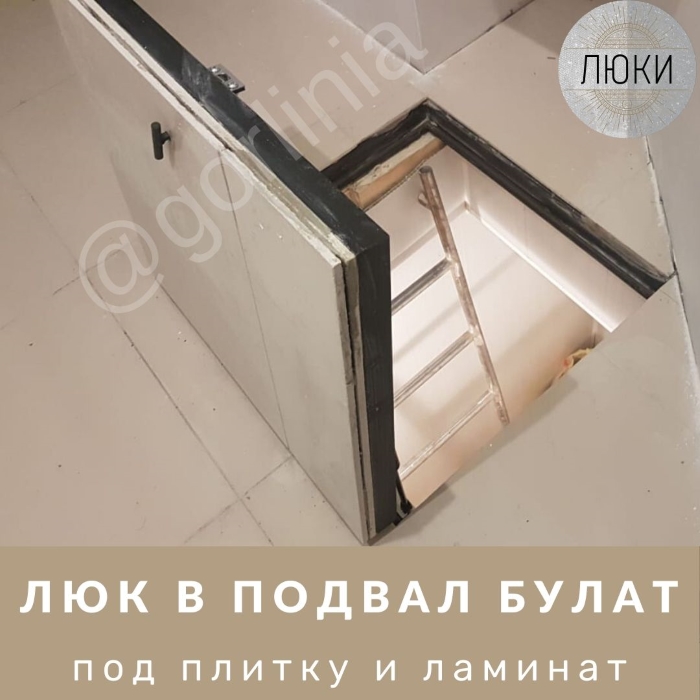 Заказная конструкция с подъемным механизмом по стороне 600 и удобным световым окном 550*600 для спуска по лестнице в погреб.