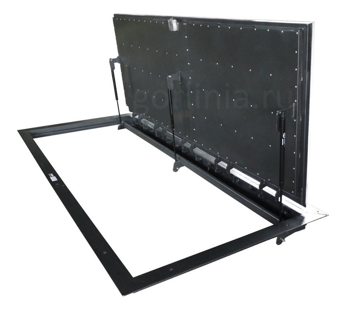 Каркас дверки из профиля 40х25 в обвязке лежит на опорной трубе 15х15 по трем сторонам, по петлевой держится на осях подшипника шарниров. Уплотнитель проложен по четырем сторонам. Снизу ось открывания закрыта коробом для отсечения тяги из подвала.