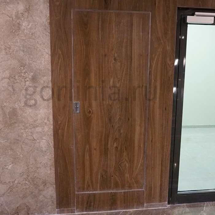 - невидимка без внешнего обрамления, когда дверной зазор совпадает со швами раскладки плитки на стене.