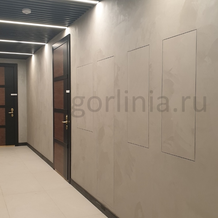 Внешняя отделка двери: шпатлевание, колеровка, поклейка обоев как в режиме невидимки, так и с окантовкой по внешнему контуру.